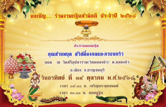 โดย พระเทพปริยัติโสภณ เจ้าคณะจังหวัดกาญจนบุรี และพระเทพเมธาพร เจ้าคณะจังหวัดกาญจนบุรี(ธ)
